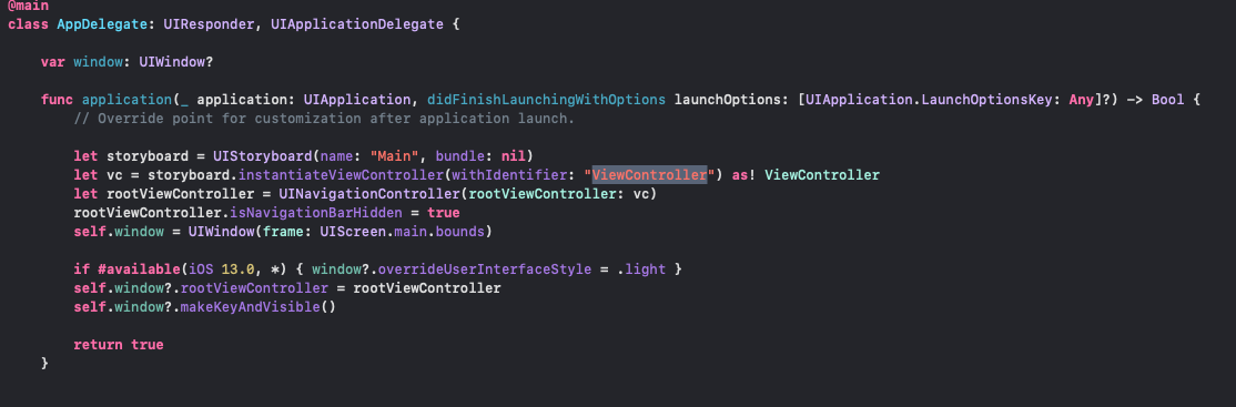 let vc = storyboard.instantiateViewController(withIdentifier: "ViewController") as! ViewController