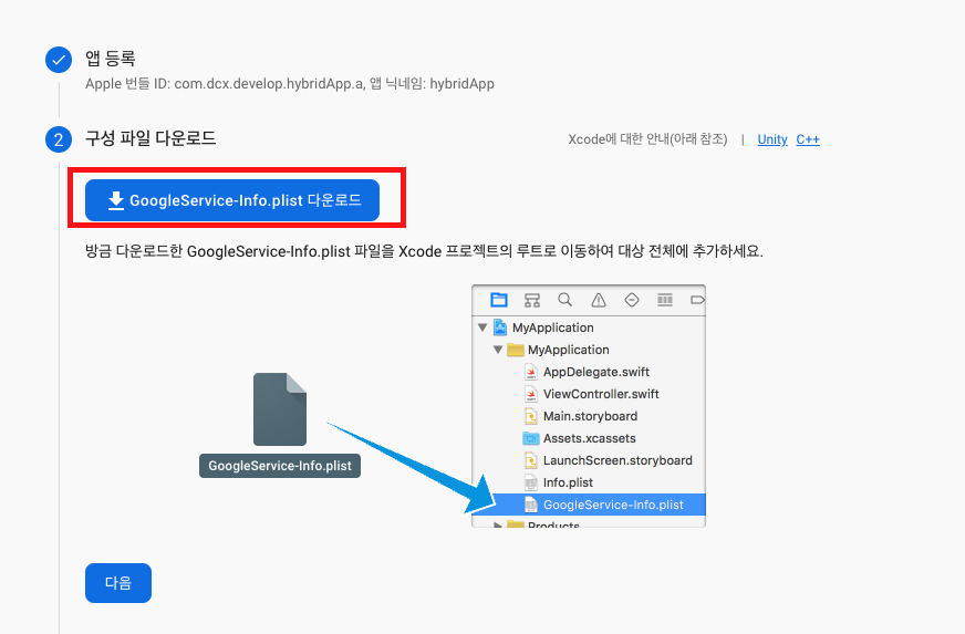 2-3 GoogleService Info 다운로드 후 Xcode 프로젝트로 드래그