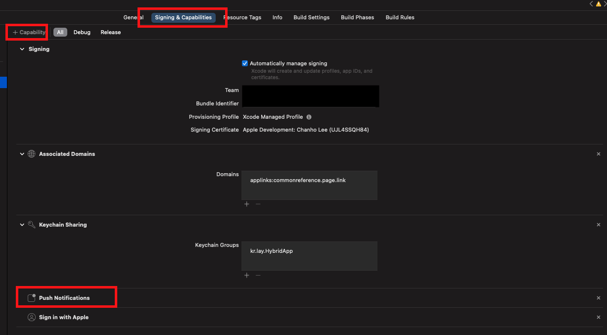 - 팀ID 입력(APNS 2-8에서 등록했던 인증서)