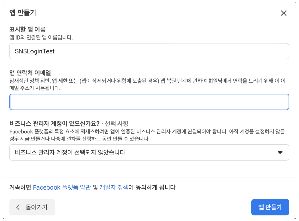 3.Facebook 개발자 사이트에서 앱 등록하기