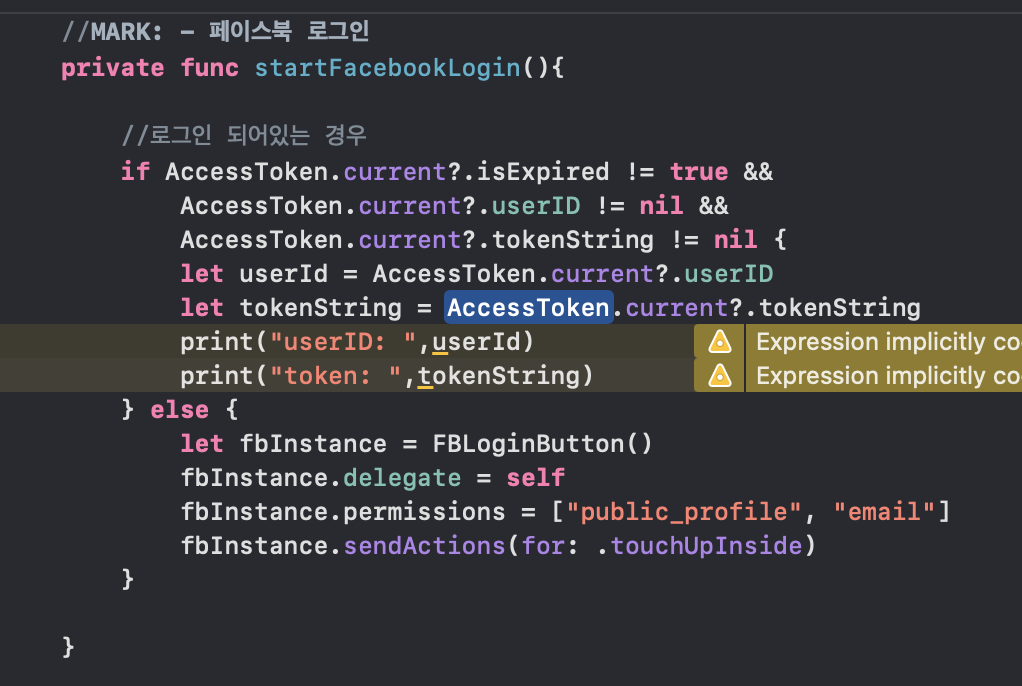 # 로그인이 안되어 있을경우 로그인 버튼 함수 생성(LoginButtonDelegate 상속)