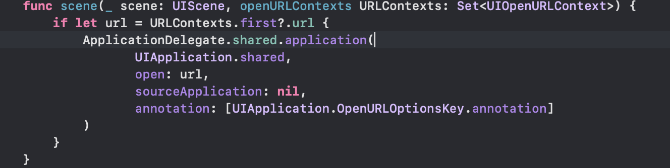 ApplicationDelegate.shared.application( application, didFinishLaunchingWithOptions: launchOptions )//Facebook loing 하기 위해 사용된 코드